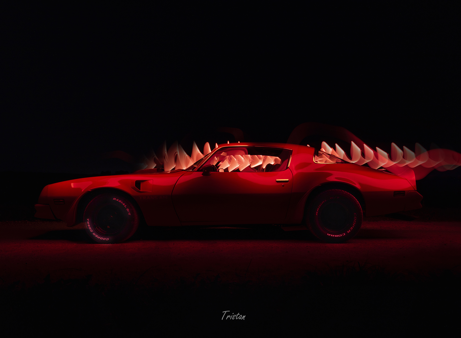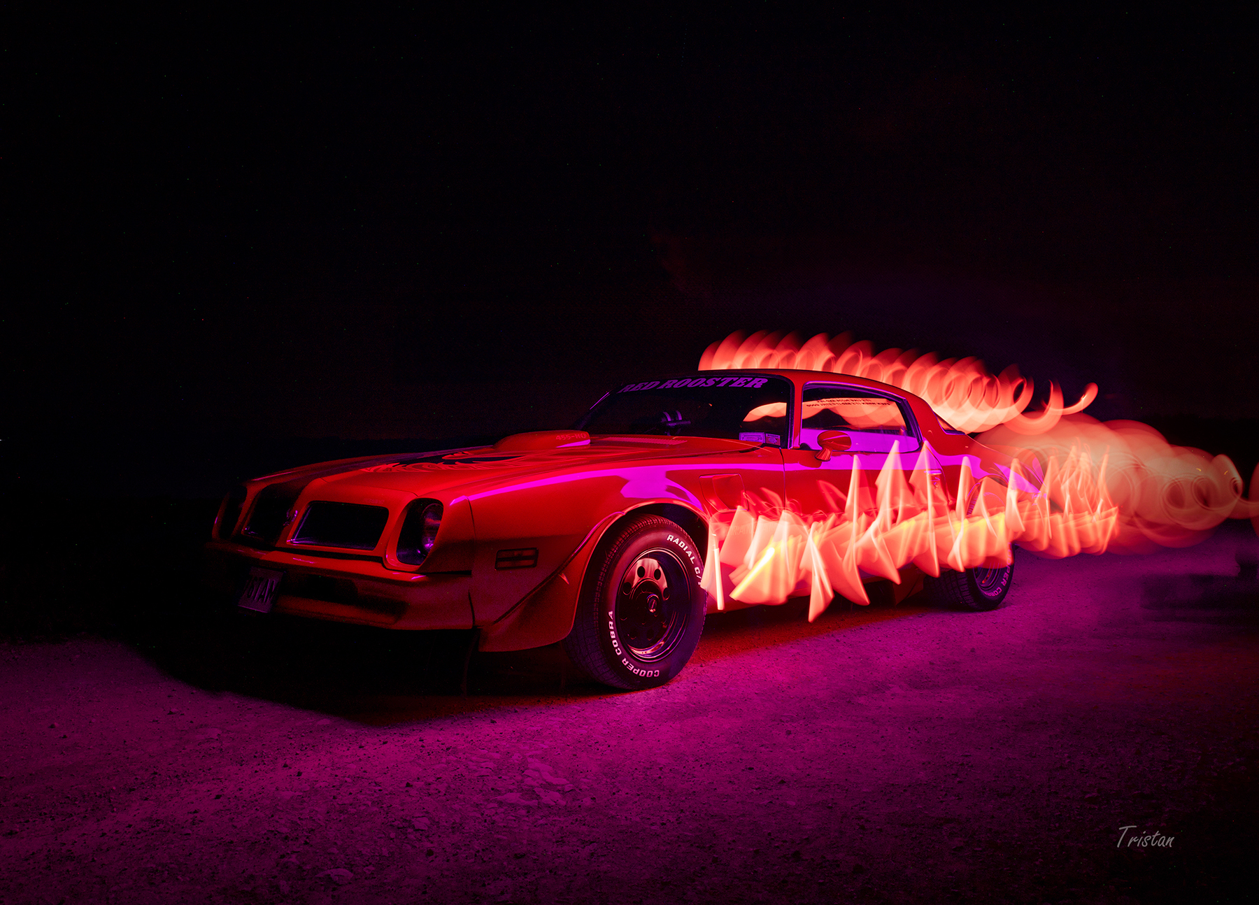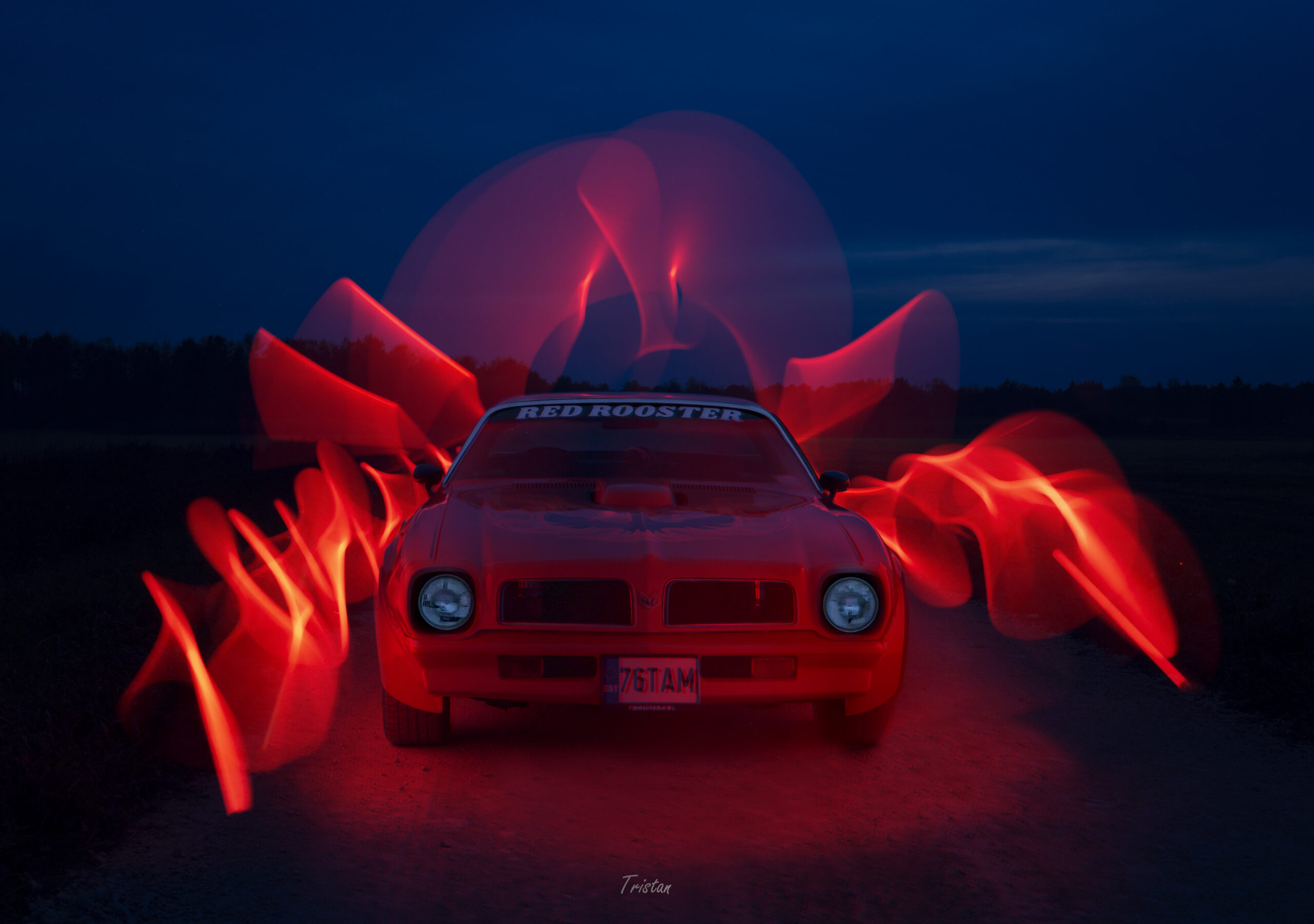 Peale loojangut liikusime edasi valgusmaalingutega. Pildistades pika säriajaga sai erinevate valgusallikatega ümber auto liikudes, joonistatud tema ümber ja peale värve, mis auto iseloomu veel paremini esile tooksid.